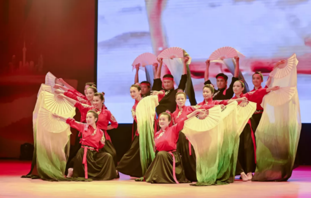 歌声飞扬,高唱百年光辉岁月;旋律激昂,谱写时代华美乐章。在全体观众撑起党旗,合唱《没有共产党就没有新中国》的嘹亮歌声中文艺展演活动步入终章。